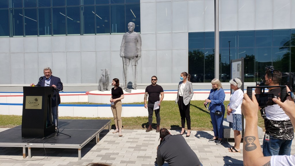 C’est aujourd’hui que la Ville de Québec a dévoilé officiellement la 3e œuvre de l’allée commémorative dédiée au hockey, à la Place Jean-Béliveau. Joe « Le fantôme » Malone côtoie maintenant Les Stastny et Jean Béliveau, et sera accompagné cet automne par Réal Cloutier et Guy Lafleur. Je vous invite à admirer cette œuvre magistrale de l’artiste Fred Laforge.